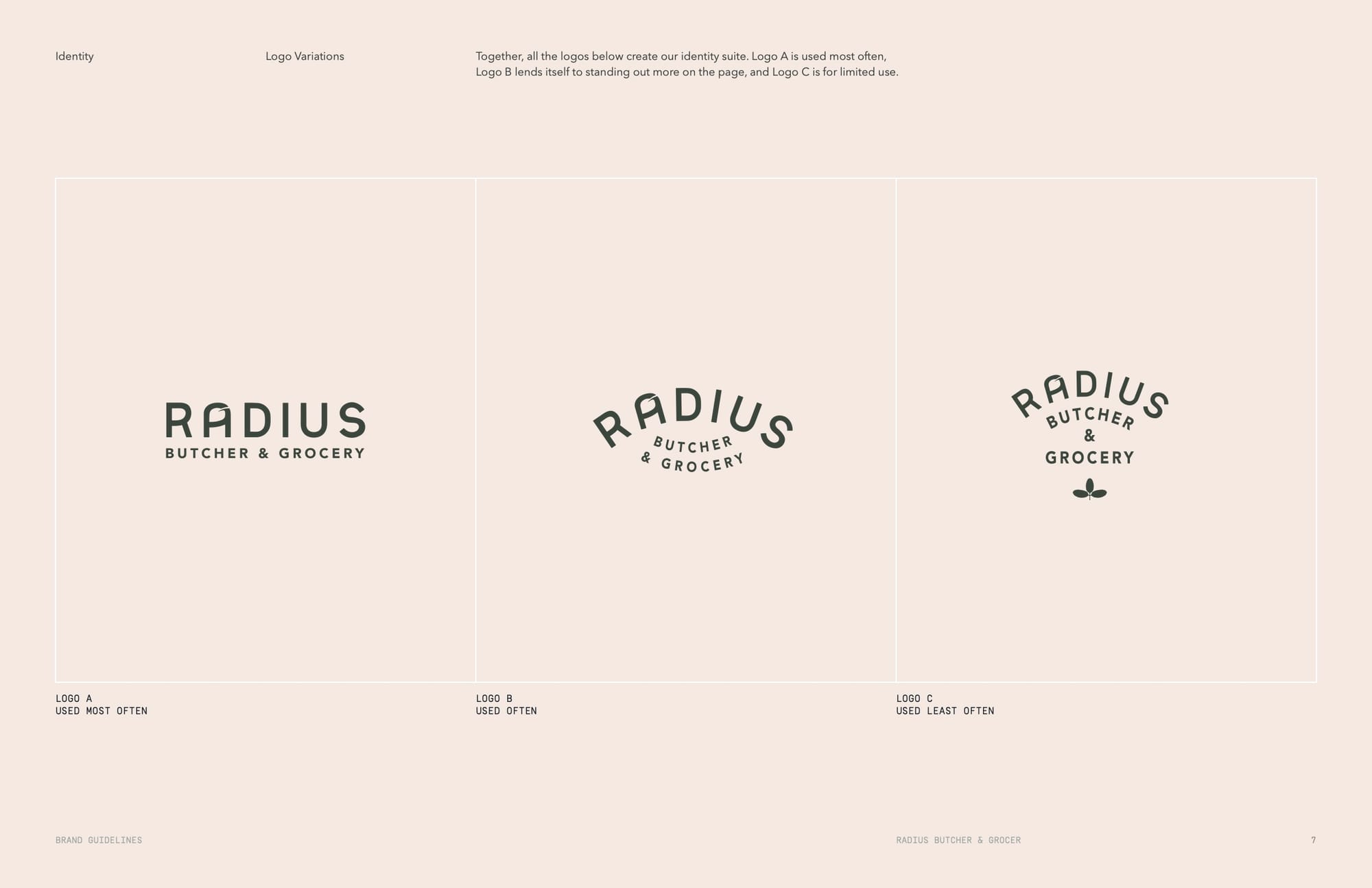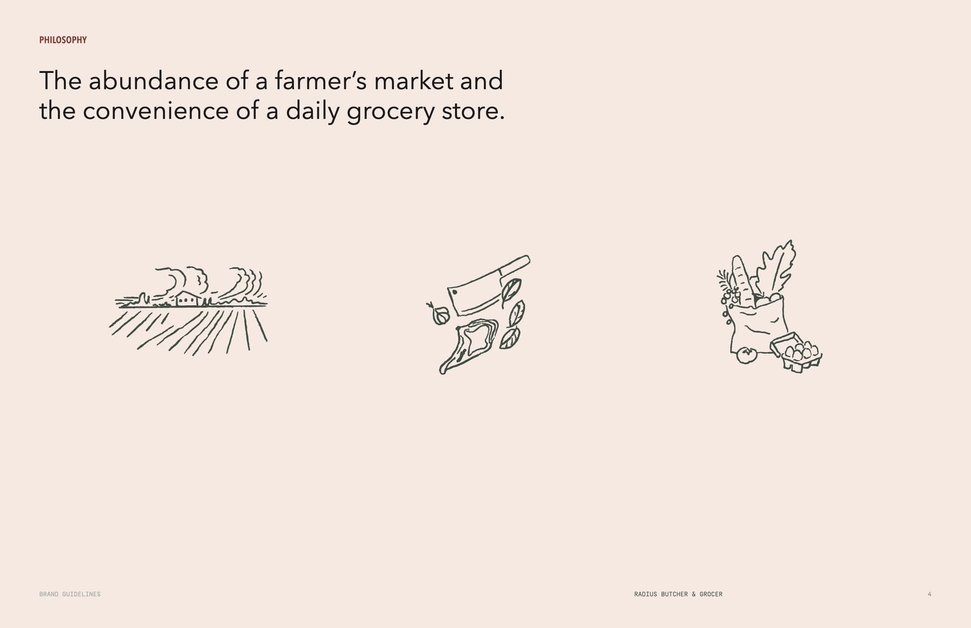Matching the progress with architecture, the visual design team shared a final draft of Radius branding. Logos, colors, illustrations, typography, and other lovely details are now ready, and we’ll start using them on the website and incorporating them into shop elements like butcher paper, shopping bags, murals, aprons, recipe cards, and so many more fun items we’re sweating the details on. The design team did an amazing job to integrate natural elements into a brand that we hope is timeless.
