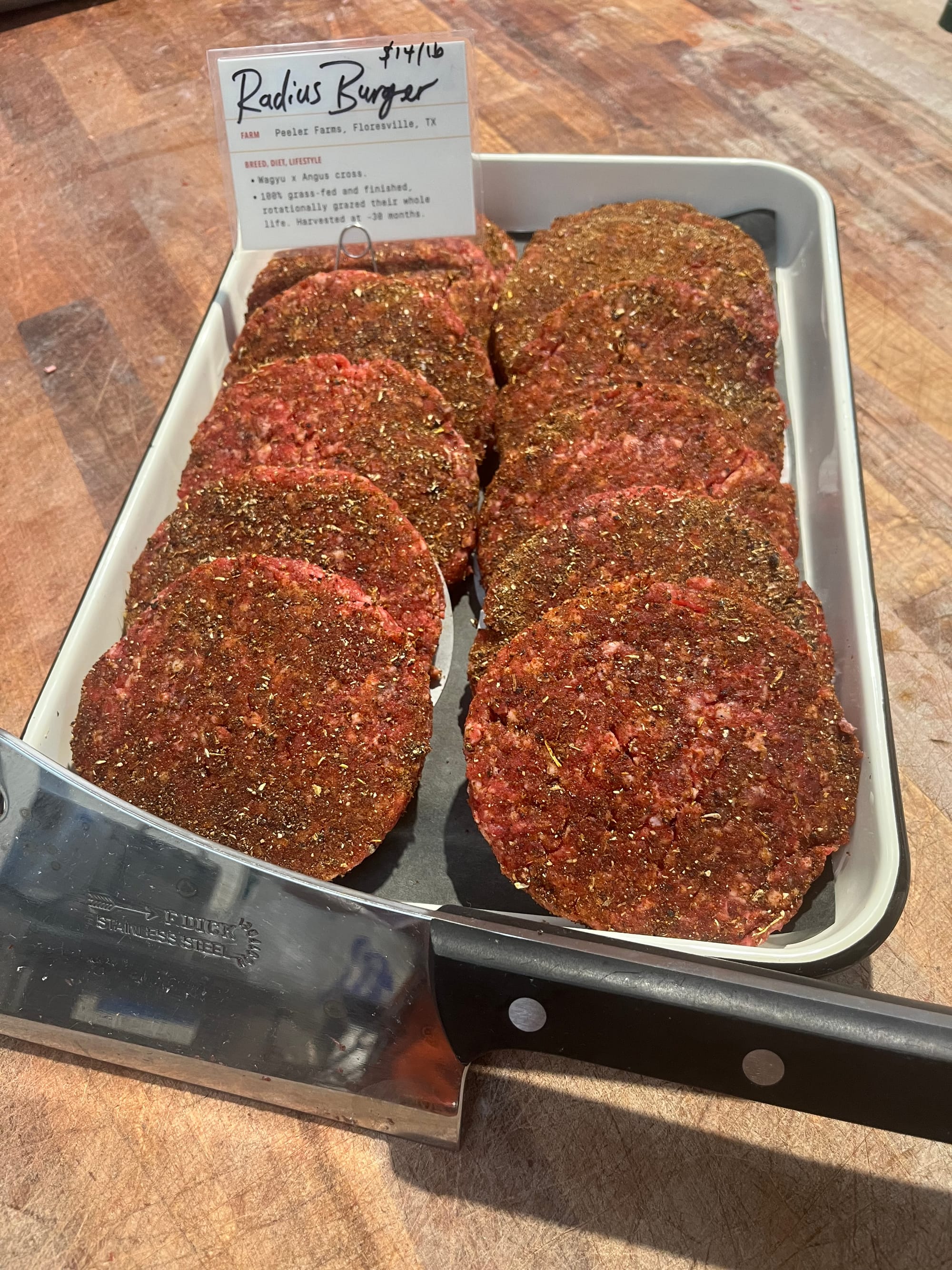 - Radius Burger: We’ve tested a new seasoned burger patty recipe for a few months that just got put into the case. It’s an umami bomb and it is very, very delicious. Chef Kim and Chef Janelle created two different types of umami powder — one from dehydrated beef demi glace, one from dehydrated mushrooms — plus a special blend of spices. The customers who have tried it so far have said it’s probably the best burger they’ve ever cooked at home.